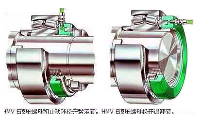 液壓螺母將軸承推進(jìn)錐形軸的安裝位置;液壓螺母旋到軸上推動(dòng)退卸套;液壓螺母將軸承推進(jìn)緊定套上;液壓螺母和止動(dòng)螺母配合使用推動(dòng)退卸套